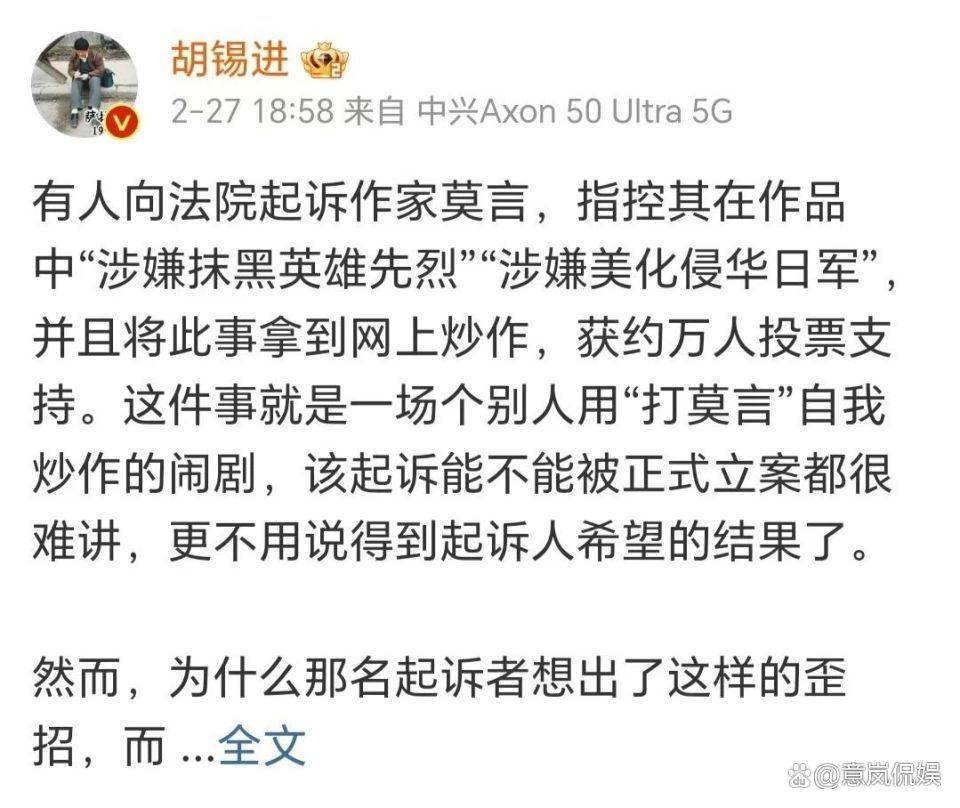 随后,胡锡进竟然将网友的质疑上纲上线与改革开放挂钩了,他说:这种狭隘的认知加情绪如果获得道义的强势,随时可能找理由喷发,就会拉低网上舆论的品格。如果它们与偏执的反对外开放思潮形成呼应,就可能形成更大危害。