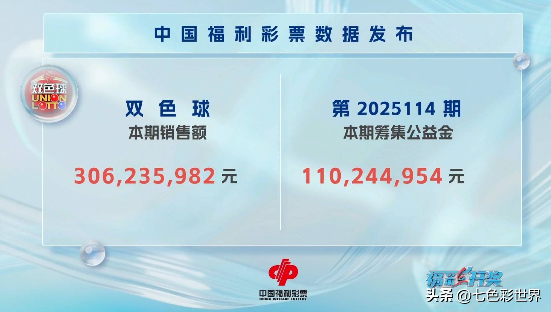 双色球第25114期全国销售总额3.06亿元,为国家募集公益金1.1亿元。