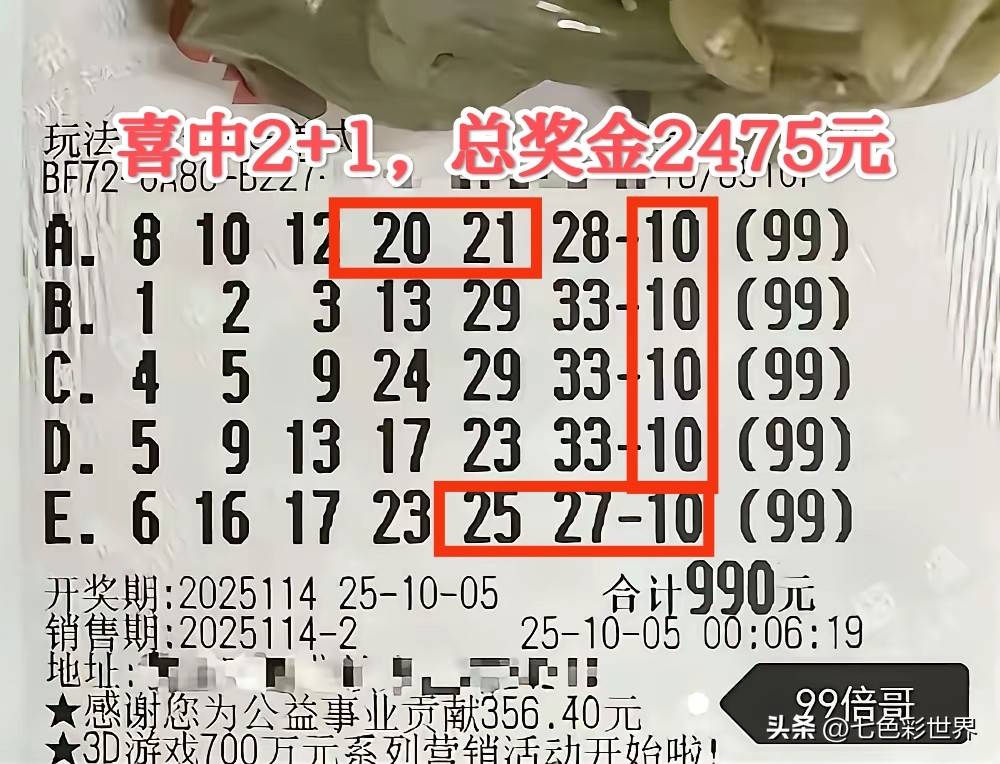 文章末尾来欣赏一张中奖彩票沾沾喜气!这张票出自江苏无锡彩民之手,虽然冲击5亿元巨奖失败,可精准命中蓝号拿下495注六等奖,单票总奖金也有2475元,算得上是小有收获了。