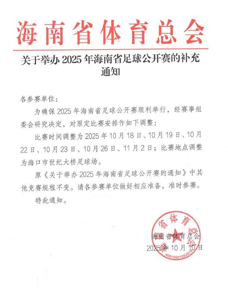 时时彩平台,腾讯分分彩,北京赛车,北京赛车pk10,北京赛车pk10技巧,幸运飞艇,彩票平台推荐,飞艇开奖,幸运飞艇官网,大发彩票,彩票平台推荐,500彩票,六合彩,大乐透,双色球,体彩足球,体育彩票10月13日,海南省体育总会发布关于2025年海南省足球公开赛的补充通知,经赛事组委会研究决定,比赛将于10月18日在海口市世纪大桥足球场鸣哨。