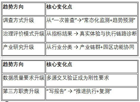 在园区与产业研究方面,公司在高铁片区、大学园区、科创区开展企业普查、经营监测、产业链图谱、招商匹配和人才结构分析,形成“园区 × 企业 × 产业 × 人才”四维体系。