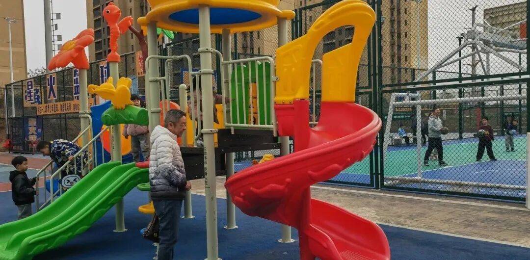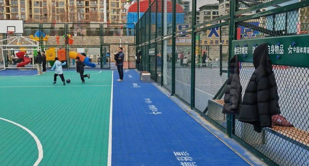 与之前不同的是,足球场的看台上多了整齐排列的座椅,观赛的人们随着场上的比赛鼓掌、欢呼;篮球场周围增添了座椅和衣帽架,大家的衣物有了“安身之所”,不再是随意地扔在地上,陪伴的家长也可以坐下等待;在健身器材旁,除了座椅,还多了一个醒目的大型彩色滑梯,小朋友们欢快地滑上滑下。在这些增添的设施上,“中国体育彩票捐赠”几个字,让大家看到了体彩的公益属性以及助力全民健身的用心与贴心。