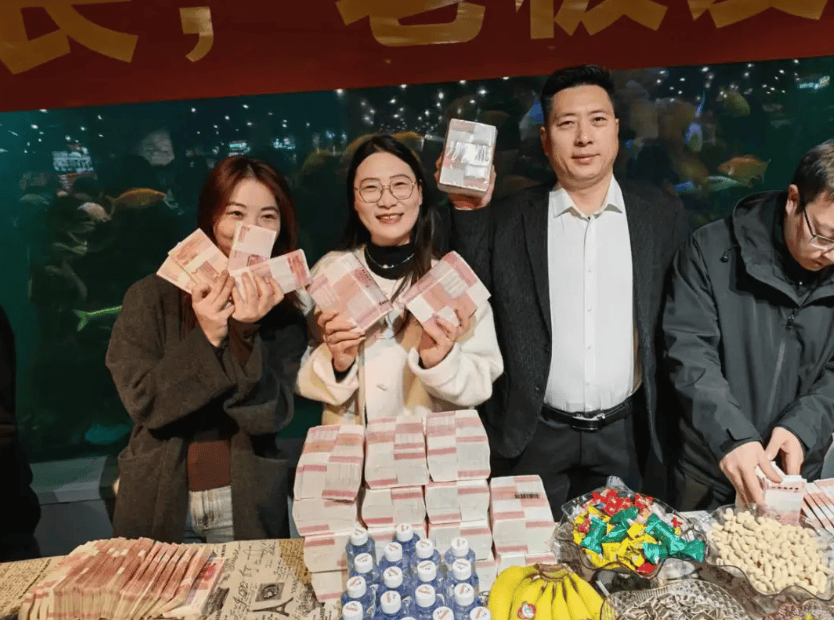 2月11日,河南农夫·刘先生连锁超市老板刘明军拿出1000多万元分给员工。山西运城、河南郑州两地共有2533名员工分到钱。按照分配方案,入职两年以上的员工可以拿到1万元,一年以上的可以领2000元,新员工可以领1000元,“这次分钱只论工龄,不论岗位,保洁、做饭的都有”。刘明军介绍,这些钱均是他个人投资黄金所得。