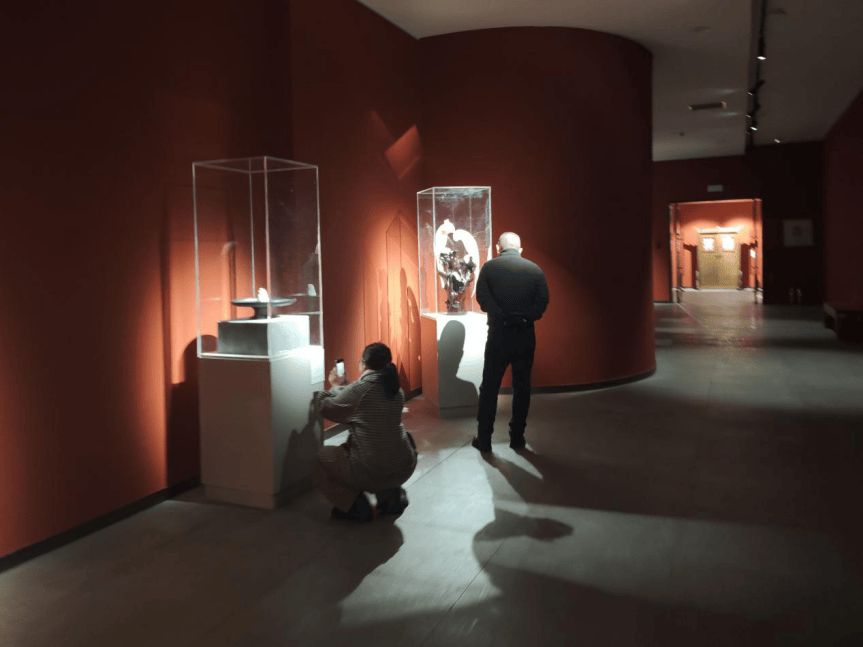 每一场精彩展览的背后,都离不开一支默默付出的布展团队。此次“贝艺匠薪”巡展河北站布展团队,由大连艺术学院艺术设计学院骨干教师组成,从展品运输、点交入库,到灯光调试、展线设计,每一个环节都与美术馆工作人员密切配合,采用“由远及近、由宏入微”的布局方式,确保每一件作品都能在最适宜的条件下呈现。